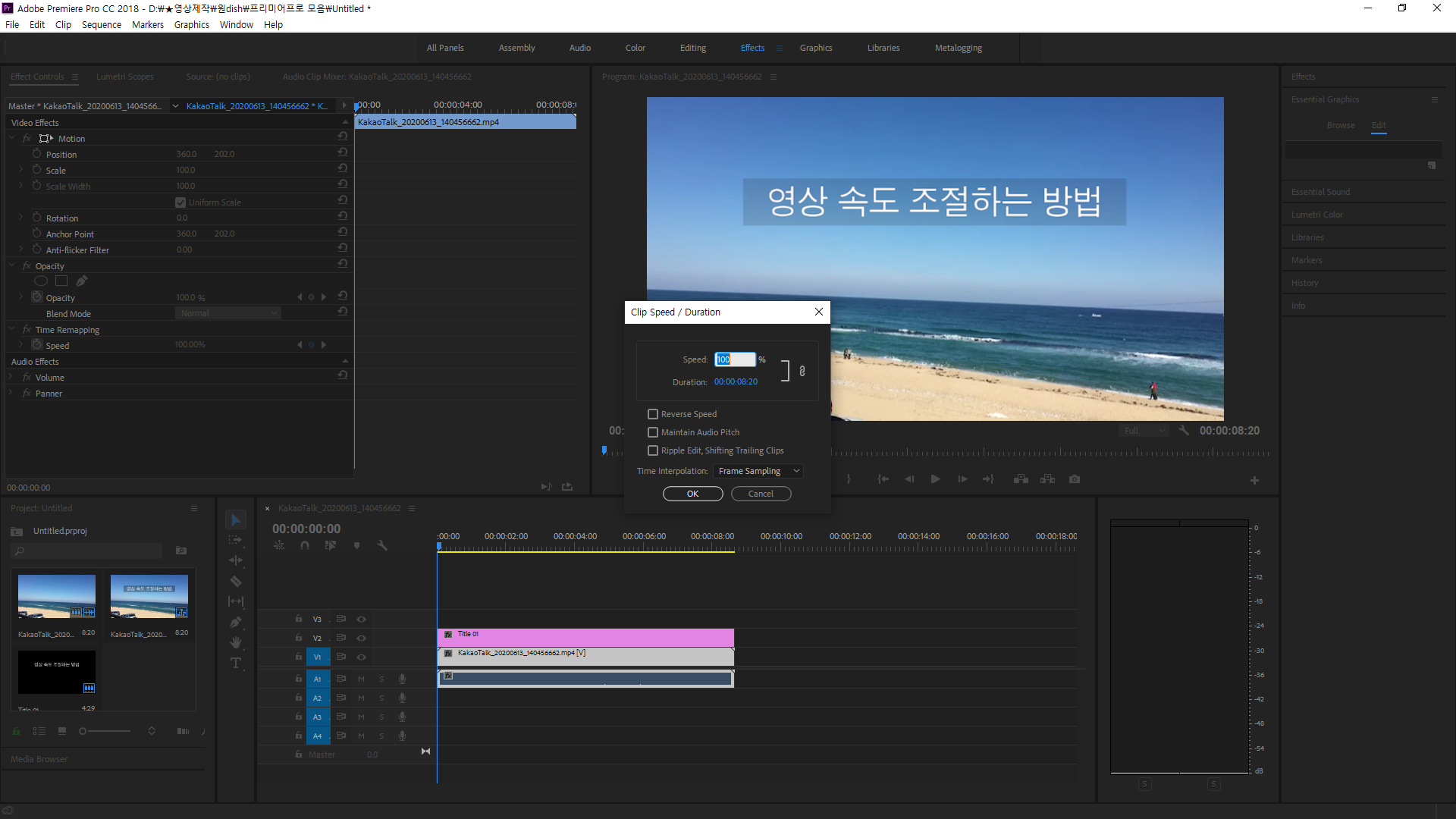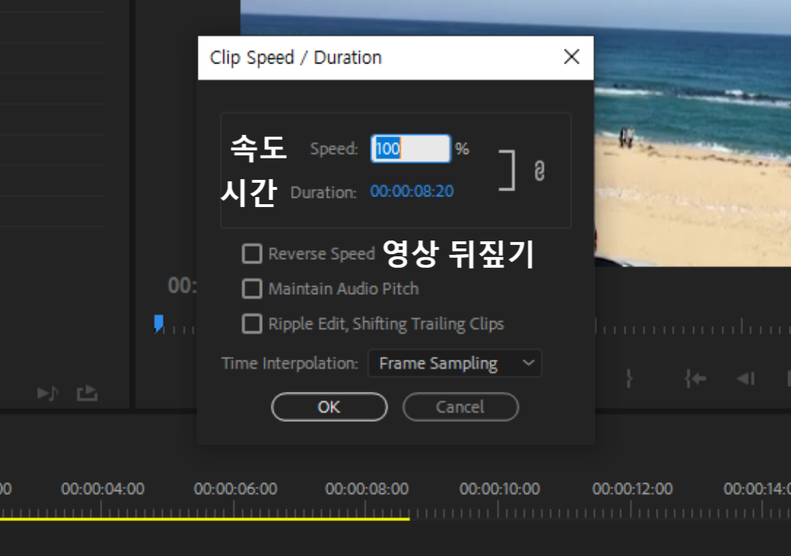 말 그대로 Speed를 조절하면 영상의 시간과 함께 속도가 조절됩니다.